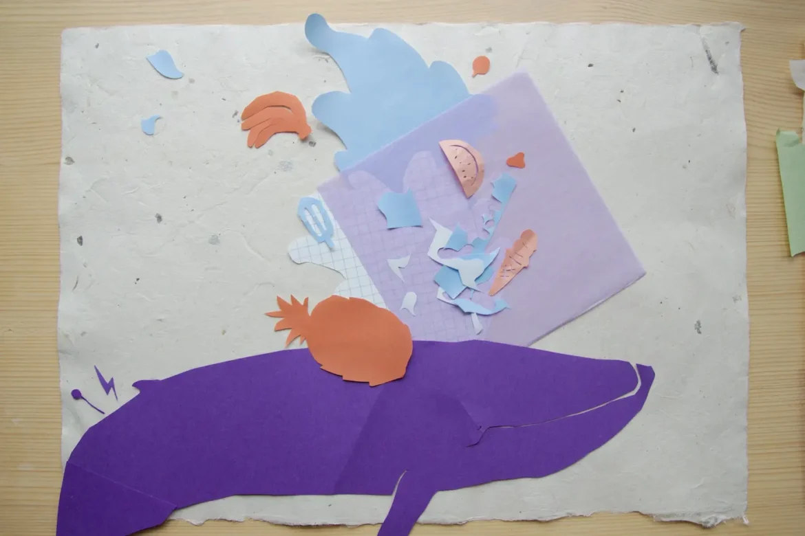 極冷火鍋店|2019 未來少年〈極「冷」火鍋店〉插圖 刊載|《未來兒童》雜誌 no.102 / 2019.06月號出刊時間|2019.06文|王文華 ▍自述 因為喜歡圖和文之間的關係,所以珍惜這些過程:從讀文字開始,用自己的方式去想像故事,自一片混沌中形成愈來愈具體的畫面。主角長什麼樣子,空間是什麼樣子,想著圖文配置讀起來的感覺,翻頁的節奏,和編輯討論呈現的畫面,讓圖和文字對話。 很多時候都很直覺,用這個顏色吧,這裡多剪一點吧,就讓紙片這樣飛下來落在剛剛好的位置吧。 放著圖隔一夜再看看,調整,補充追加,一切慢慢的成形,直到最後印刷出來終於拿到手上。滿意或不夠滿意,討論,也許下回再調整。 有時回頭翻翻過去的作品,也發覺自己的長相漸漸不同。有點像是磨刀或練劍,能夠有練習和嘗試的機會,緩慢累積的過程。 . 這篇故事講一個在夏天吹很強冷氣坐在冰屋裡吃火鍋的極冷火鍋店,到冬天會變身為在火熱沙灘晒太陽吃冰的極熱冰淇淋店的故事。((嗯,最後就……跳電了XDD)) 在現在這個極熱夏天讀起來真是貼切呀。 圖為〈極「冷」火鍋店〉的其中一個跨頁原稿。就是極「熱」冰淇淋店的樣子喔。 -2019.06